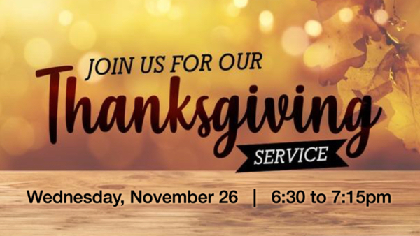 – 6:30 to 7:15pm – Thanksgiving Eve Worship
