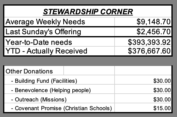 – 6pm – Gems/Cadets, Men’s Women’s Ministry