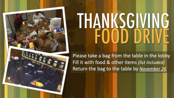 – 6:30 to 7:15pm – Thanksgiving Eve Worship